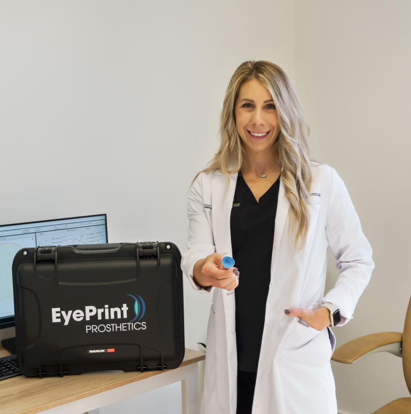 EyePrintPRO is a fully customized scleral lens made using a detailed impression (similar to a dental mold) of the eye’s surface.